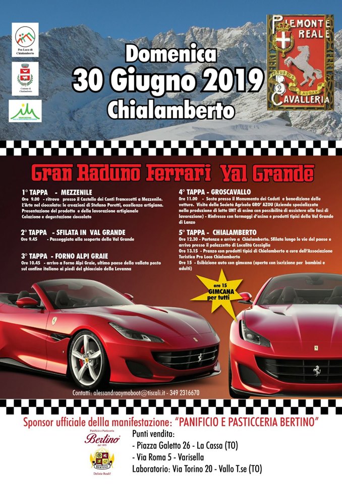 RADUNO AUTO SPORTIVE FERRARI CON TAPPE DA MEZZENILE FINO A FORNO ALPI GRAIE (VAL GRANDE) E NEL POMERIGGIO ESIBIZIONE AUTO CON GIMCANA PER TUTTI